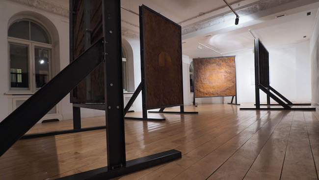 Galerijas „Alma” vadītājā Astrīda Riņķe izstādes atklāšanā norādīja, ka dzelzs blāķi, kurus mākslinieks izstādījis galerijas baltajā zālē, izskatās pēc kapakmeņiem. Novērojums ir trāpīgs tāpēc, ka uz tiem ieskicēti blāvi pamestu māju silueti. Lai gan tas varētu būt pārspīlēti teikts, gribētos tos uzskatīt par tādām kā ‘epitāfijām’ – atsaucēm uz māju kādreizējo stāvokli, pirms tās pametuši iedzīvotāji un tās lēnām, nespējot pretoties laikam un apkārtējiem apstākļiem, apaugušas ar sūnām vai sabrukušas.