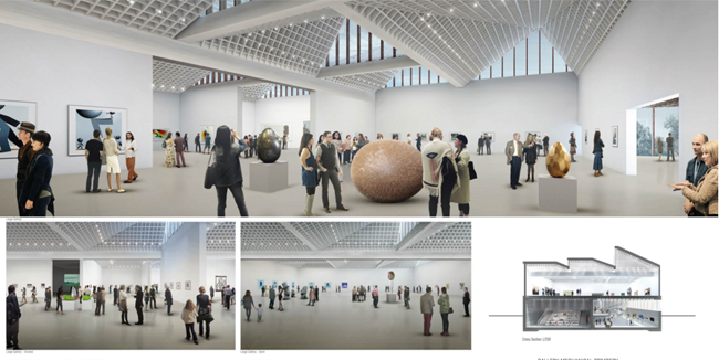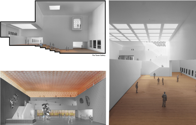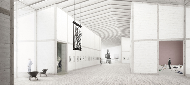 Muzeja ēkas ātrijs nākotnē ne vien aizvestu uz izstāžu zālēm, bet arī pildītu savienojošu funkciju – kā vārti uz parku, ielu un muzeja zālēm. Muzeja apjumu veido vairākas atsevišķas dažādu formu, izmēru un funkciju ēkas, kuras savieno ātrijs.