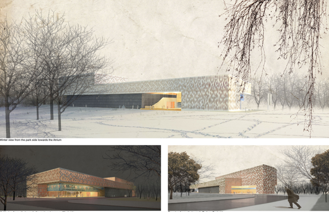 Lai padarītu muzeja ēku par vietas dominanti, tiek piedāvāts palielināt apkārtējo zaļo zonu uz rietumiem, padarot parku par daļu no ēkas arhitektūras un izmantojot to kā mākslas eksponēšanas vietu. Projekts paredz iespēju, ka nākotnē tas varētu tikt paplašināts ar vēl divām izstāžu zālēm.