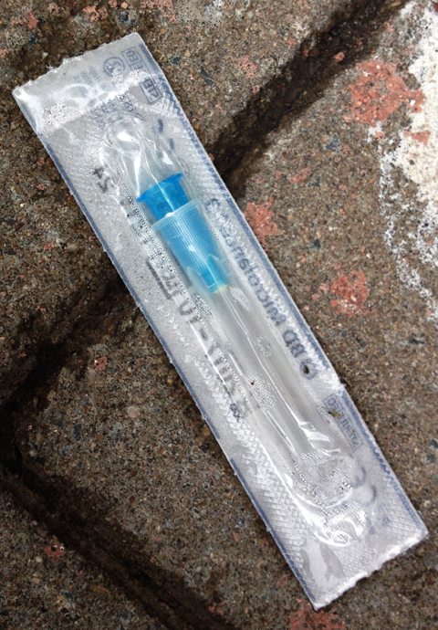 По ходу дела возникла и бытовая версия: а не метятся ли так какие-то места, где торгуют наркотой? Потому что под ногами был обнаружен и шприц, который с торца ровно такая точка.