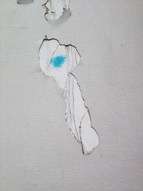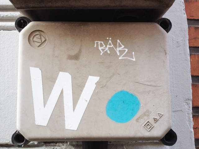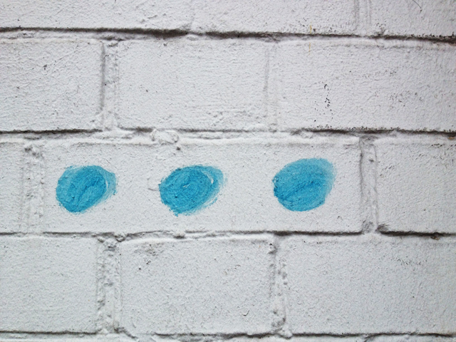 То есть вот как-то всё метится. Причём я сам бы в свободное время тоже ходил по Риге и тоже ставил бы точки или не точки, но времени нет, да и с красками возиться не привык. Но ставил бы, соотносясь исключительно с желанием в каком-то месте это сделать. Предполагаю, что и в данном случае мотивация примерно такая же. Вообще непонятно, как носить краску-кисть, как не пачкаться, а главное – сколько раз за прогулку возникает такое желание и при каждом ли выходе в город? Вообще это один человек, несколько? Было бы несколько – весь город был бы уже в горошек. Или ими маркируется только какое-то определённое желание, причём – сильное? В общем, главное, что тут в самом деле реализуется некое желание: по крайней мере, поставить голубую точку в каком-то месте. А город тогда одновременно оказывается местом присутствия (или даже возникновения) этого желания и – вдобавок – как-то ещё дополнительно связывается ими. К тому же производя ещё и некоторый зазор: что же это всё-таки такое?