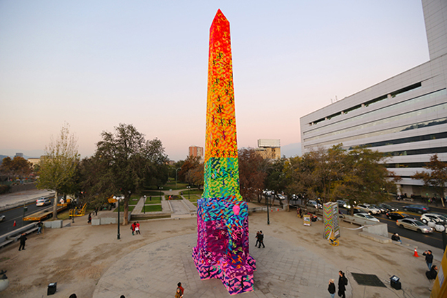 Olek crocheted a covering for this obelisk in Santiago, Chile