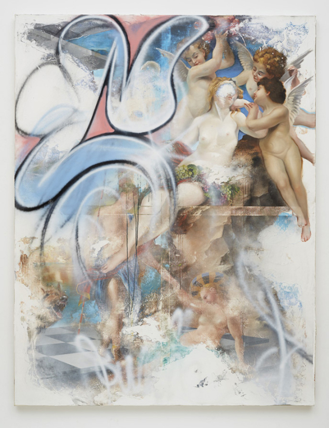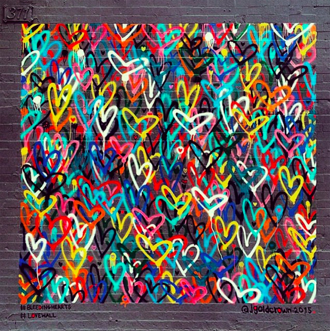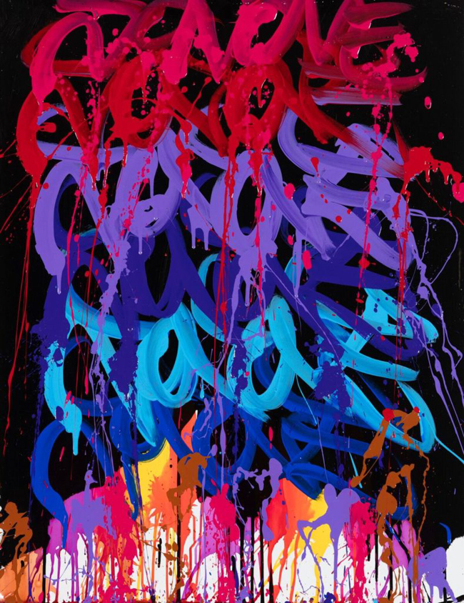 Работа немного в рифму к сердечкам, но именно её Артнет видит как тренд: движение граффити к формам Искусства Как Такового. В данном случае – имея в виду Поллока. Поллок, понятно, дело давнее, но тут отмечается, что тем самым JonOne размывает границу между улицей и галереями (и музеями тоже).
