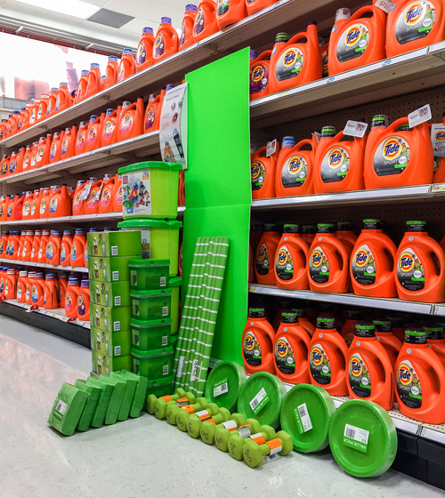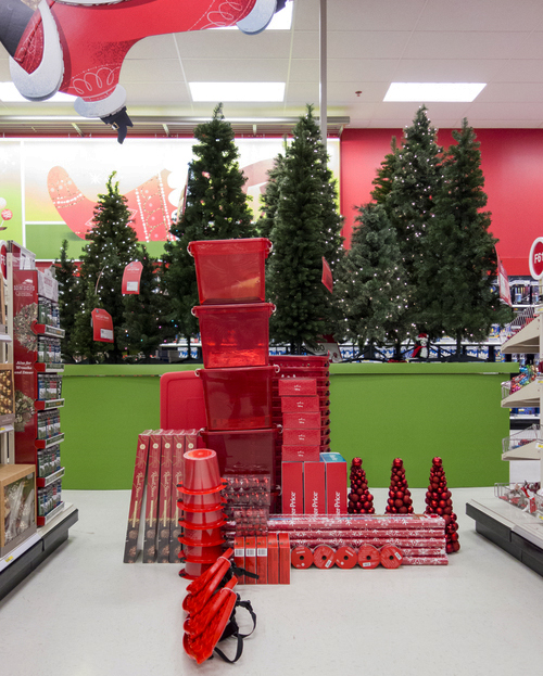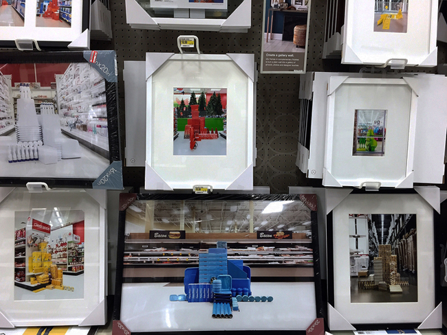 Непонятно, в согласии ли он с персоналом. Скорее, да. Всё же работа трудоёмкая, требует времени, а ещё и элементы надо изымать из торговли. Да автор и сам не говорит о партизанщине. Вообще, объект на входе – на фотографии в заголовке, – как его выстроить исподтишка? Значит, в некоторых торговых центрах бывают продвинутые менеджеры. А в секции Home Department («Для дома и семьи») имеются красивые фотографии построенных объектов. Ну, собственно, какая разница – санкционировано или нет, неважно.