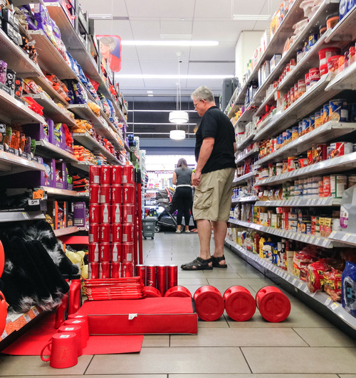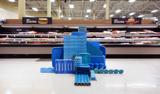В предуведомлении к проекту автор очень серьёзен: «То, как мы потребляем изображения, увековечивает глубинный цикл производства-потребления». И тем самым пространства культуры и не культуры сближаются, разрыв между ними сглаживается. Далее: «Проект Mass использует этот факт, внедряясь в сложившуюся экосистему розничных пейзажей магазинов типа “Big Box” (суперцентр, супермаркет или мегастор)». То есть это у него теоретическое обоснование того, почему именно супермаркеты теперь лучшие места для искусства. Причём он имеет в виду не только своё, вот это конкретное, а вообще.