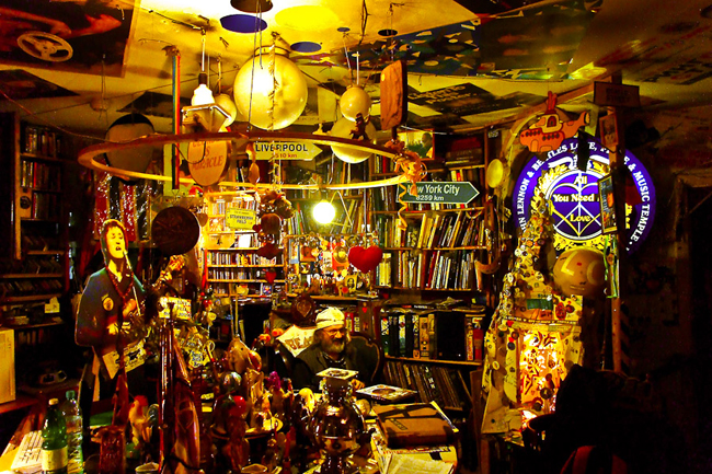 Раскручивание своих заморочек – да хоть и по возвышенному поводу – дело отчасти сомнительное. Ну, не сомнительное, но очень уж личное. Зато иногда это красиво. Вообще, Гора похожа на автобус Проказников Кена Кизи и компании, что логично, потому что субкультура места, в котором поселился Knight (Калифорния, squatters, hippies, drifters, and snowbirds), определяет и стилистику, как ещё. Конечно, просветления тоже стилистически зависят от своих обстоятельств. Но тут очищенная стилистика: в этой среде бывало всякое, а Гора сделана в самом приятном варианте. Да, она не только снаружи, у неё есть и внутренности.