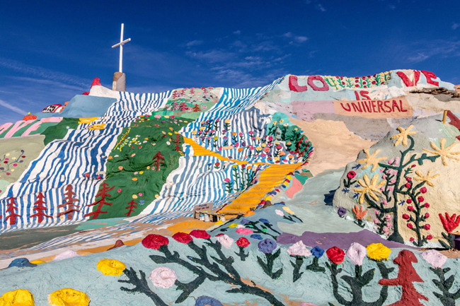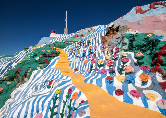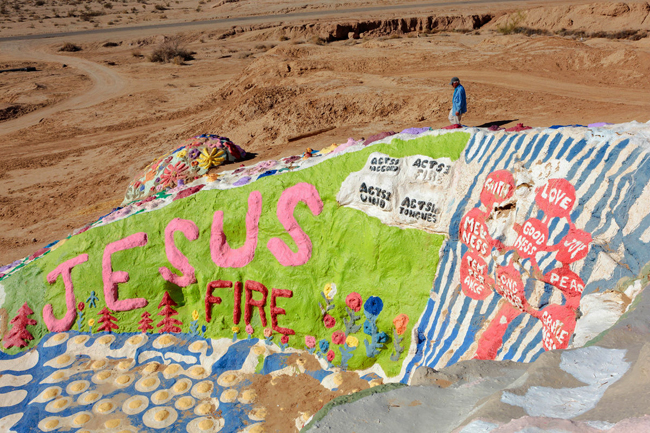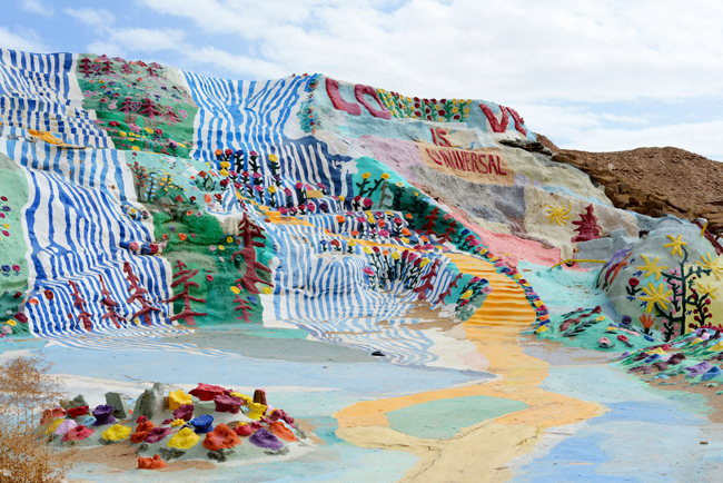 Это немного приблудившаяся история. В соцсетях попалась ссылка на ещё февральскую статью из Artsy, а та, причём безо всякого, хотя бы и календарного повода – о человеке, умершем еще в 2014-м. Вот статья: In the California Desert, One Man Built a Technicolor Mountain to Save His Soul. Ради спасения своей души человек построил в калифорнийской пустыне разноцветную гору.