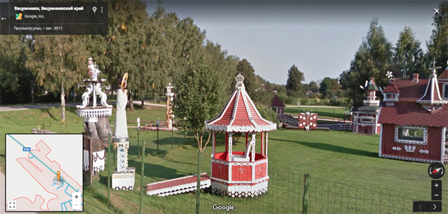 Собственно, я тут о чём-то другом, чего пока не могу сформулировать. Зайду с другой стороны. Во-первых, таких историй на свете много. Кто-то принимается делать что-то раз и на всю жизнь, на ту или иную тему, так бывает. Это сейчас не о профессионалах, а о частных лицах. Не так самоуглублённо, в несколько большей гармонии с окрестностями (да и на ту же тему), есть и у нас: в Вецумниеках на хуторе «Юрас» на въезде со стороны Риги у Юриса Аудзийониса (Juris Audzijonis). Но там лужайка возле дома, вполне интерактивная. А у Knight'а просто какая-то длительная волна самоуглубления. Интерактив в неё привносится уже публикой.