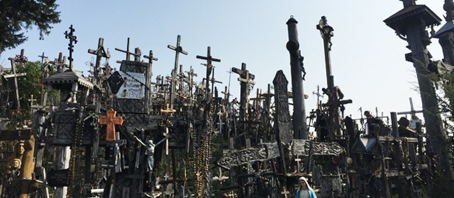 Есть и гора на ту же тему, тоже неподалёку от нас, Kryžių kalnas возле Шауляя. Интерактив тут и зрительский, и по соучастию (в том числе – через торговлю крестиками в магазине возле инфоцентра).