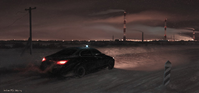 Это и визуализация «русского мёртвого», и высказывание о героизме, и просто крутейший эстетический проект. Чёрные мерседесы, дымящие трубы сибирских заводов, снег, нефть, кровь и чудовища с головами псов.
