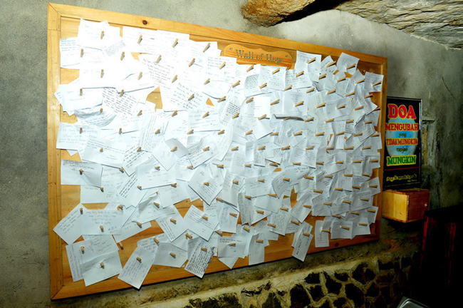Доска «Стена надежды», прикалывают записки.
