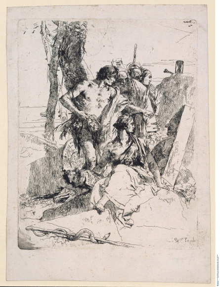Ироническое прочтение темы Et in Arcadia ego предложил Джованни Баттиста Тьеполо в гравюре из серии Scherzi di Fantasia. XVIII век