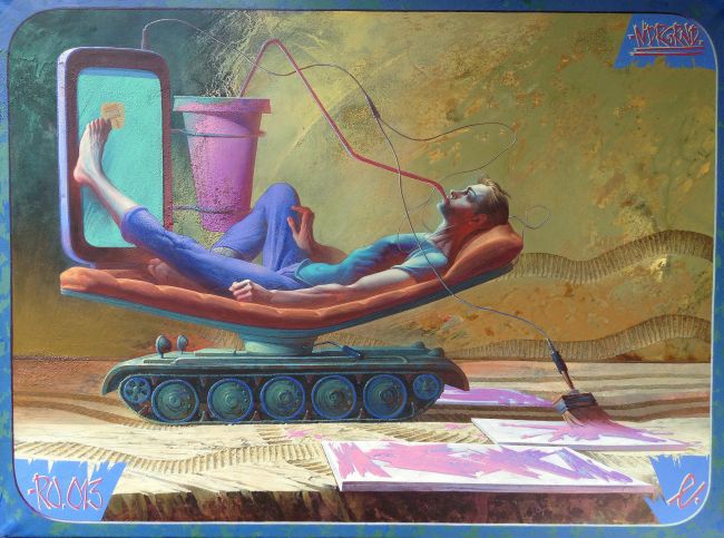 В нашем случае никаких старинных атрефактов (из условного «Золотого Века») вроде бы не предусмотрено. Выставка реагирует на тенденцию арт-жизни именно последних лет. С одной стороны, очевидна упоминавшаяся счастливая ностальгия по Большому стилю – топосам великих утопий (Ренессанс, Барокко, вплоть до утопий советского времени). С другой стороны, личность терзающегося художника, его личные время и пространство всегда с этими топосами соотносятся конфликтно. Ситуация в принципе отсылает к эпохе маньеризма XVI века – времени, когда гармоничная картина мира исказилась (но не исчезла совсем, деформировалась, как в кривом зеркале) из-за катастрофического самоощущения людей, растерянных перед руинами казавшихся нерушимыми догматов. Уместно вспомнить изречение известного историка искусства Макса Дворжака: «Когда мировое здание, каковым и было мировоззрение позднего Средневековья, Ренессанса и Реформации, рушится, возникают руины. Художники, как равным образом и всегда слишком многие во всех духовных областях, теряли поддержку всеобщих максим, за которые могли уцепиться их усердие, их тщеславные цели и их маленькие затеи. И мы стоим перед зрелищем исключительного замешательства, и в пёстрой смеси старого и нового, в различных направлениях философы, литераторы, учёные и политики и в не меньшей степени художники ищут новые опоры и цели; художники, к примеру, в виртуозной артистичности или в новых формальных абстракциях, сгустившихся в академические учения и теории».