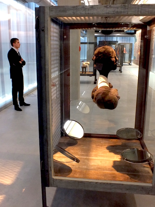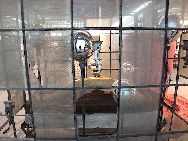 Серия, давшая название выставке, берёт отсчет в начале модных сегодня в России 90-х. Тогда художнице было около 80 лет. В моём сознании название больших инсталляций-энвайронментов «клетки» рифмуется с альбомом Стинга Soul Cages («Клетки души»), который появился как раз в 1991 году и стал культовым в неформальной жизни перестроечного СССР. В принципе, и у Луиз Буржуа клетки – это визуализация того нематериального вещества, из которого соткана душа. И эта ткань у неё порвана, порезана, забыта и брошена. Экзистенциальные корчи – вот главная тема «клеток» художницы. Сама она говорила так: «”Клетки” представляют собой разные виды боли: физическую, эмоциональную и психологическую, душевную и умственную». Действительно, в различных ограждающих конструкциях заперты свидетельства жутких ночных кошмаров: выполненные в твёрдых материалах или в ткани отрезанные человеческие органы, гильотина над скульптурным особняком, мясорубки над изогнутым в болевом шоке безголовым телом. Зритель должен двигаться среди этих спазмов безотчетного страха и подглядывать в полураскрытые дверцы разных загородок, или в щели, или в замочные скважины, или в отражения зеркал. Так возникает порочное сообщество вуайеристов: ты подглядываешь за преступлением, немые его свидетели – вещи – подглядывают за тобой.