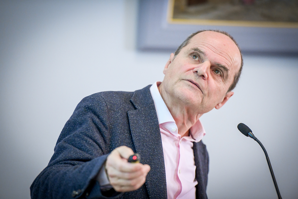 Экхарт Гиллен на конференции в музее «Рижская биржа», посвящённой Борису Лурье и NO!art. Фото: Илмарс Знотиньш