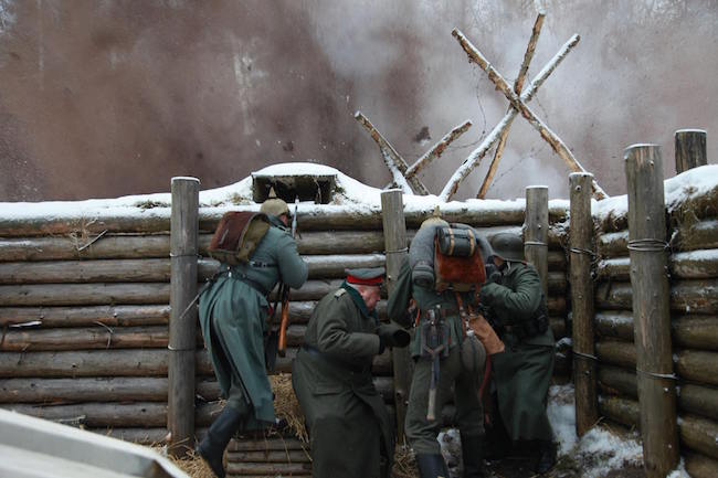 Обстоятельства Первой мировой войны, того, что события происходят ровно 100 лет назад, вводятся кадрами раненых военных в соответствующем эпохе обмундировании, передвигающихся в некоем плавательном средстве к суше. Тут ещё раз надо подчеркнуть, что в фильме мало конкретики – как в глобальном приложении (исторические реалии боевых действий никак не прослежены, есть только вынесенный за событийные скобки, но присутствующий фоном факт), так и в деталях. Так вот, мы не видим в фильме генералов, тактических манёвров, столкновения армий, масштабных сражений, перестрелок или рукопашных стычек. Но война показана не просто как деструктивное положение дел, а как данность, безусловно высвобождающая хаос.