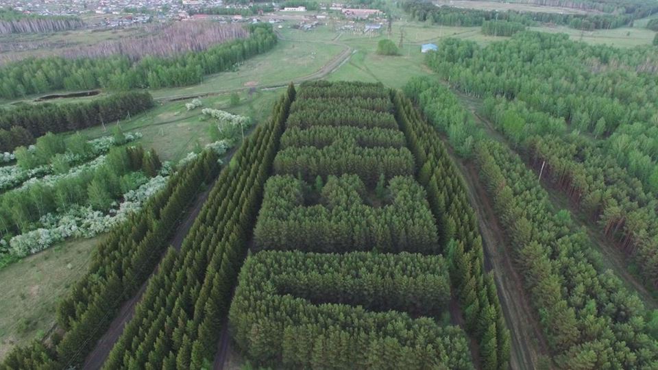 Слово «ЛЕНИН» из ёлок, высаженных на окраине г. Тюкалинска, Омская область