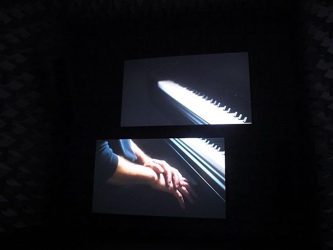 «Двойной» концерт предвосхищает открытия звуковой формы новейшего времени. Эту же тему поддерживают два видео по сторонам главного зала, в которых показана работа диджея, сводящего две версии концерта в один трек. Своим звучанием этот трек постулирует новую культуру звука, подтверждая тезис Анри Сала об аннигиляции классических пространственно-временных отношений, переводе коммуникации с миром в иные медийные измерения. По изысканности программу павильона можно сравнить с текстами французских постструктуралистов. Отрадно, что тему асинхронного видеоизображения рук пианиста и звучания классической музыки, которое эти руки издают, разрабатывал ровно год назад российский художник Сергей Шутов – участник выставки «Оковы славы» в московской Stella Art Foundation.