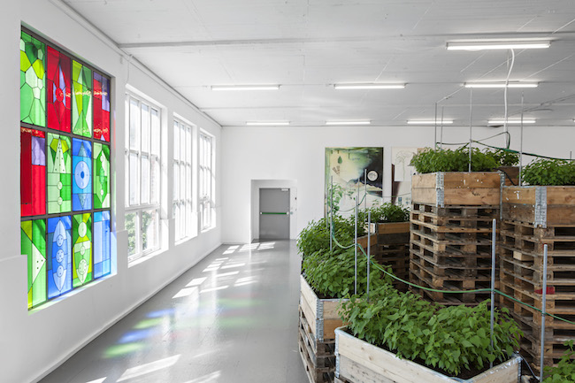 Отсюда и основополагающий принцип кураторов – не выносить художнику положительного или отрицательного приговора, даже если его творческий эксперимент оказался неудачным. «Для нас формат биеннале подразумевает право художника на ошибку, ведь биеннале – это эксперимент, а его результат вовсе не всегда должен быть положительным», – объясняет Йонатан Хабиб Энгквист. – «Мы не хотели делать ещё одну биеннале о переустройстве мира, ещё одну биеннале-утопию. Наша экспозиция – не иллюстрация идей, но попытка прожить их; попытка сделать выставку, которая не показывает, но осуществляет что-то». В экспозиции действительно много работ, представляющих собой процесс. Инсталляция Кристин Одлунд – горючая смесь из передовых исследований в области биологии, оккультных антропософских практик и синестезии – феномена, при котором сознание человека присваивает буквам или звукам определенные цвета. Два огромных плаката, нарисованных Одлунд на основе данных научных исследований, иллюстрируют, как растения (в данном случае – крапива) общаются на химическом уровне, посылая друг другу звуковые сигналы об опасности. Рядом процесс, изображённый на плакатах, можно наблюдать вживую – кадки с крапивой составлены в спиралевидный коридор, по листьям ползают гусеницы (те самые источники опасности), которые к концу выставки должны превратиться в бабочек. Кроме того, на крапиву светят разноцветные лучи, попадающие в комнату через витраж, – в каждый цветной квадратик стекла Одлунд поместила оккультный символ. Возможно, крапива, как и человек, в состоянии воспринимать разные цвета, или пока это домыслы из области околонаучных практик?