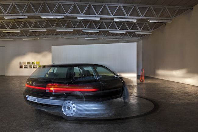 В центре выставочного зала Momentum Kunsthall стоит невзрачный чёрный Opel; вернее, не стоит, а крутится вокруг своей оси, как будто это юла, подпитываемая вечным двигателем. Колеса машины вывернуты так, что она описывает ими идеально ровный круг, с каждым оборотом делая его всё более и более чёрным. Кажется, остановить это движение невозможно. Внутри машины сидит человек – это автор, художник Юлиус фон Бисмарк, для которого подобный эксперимент над собственным вестибулярным аппаратом уже не первый. Через несколько дней после открытия биеннале Momentum в норвежском Моссе он точно так же будет кружится вокруг своей оси на ярмарке Art Basel – на этот раз на конусообразной платформе, устроившись на кровати с книжкой.