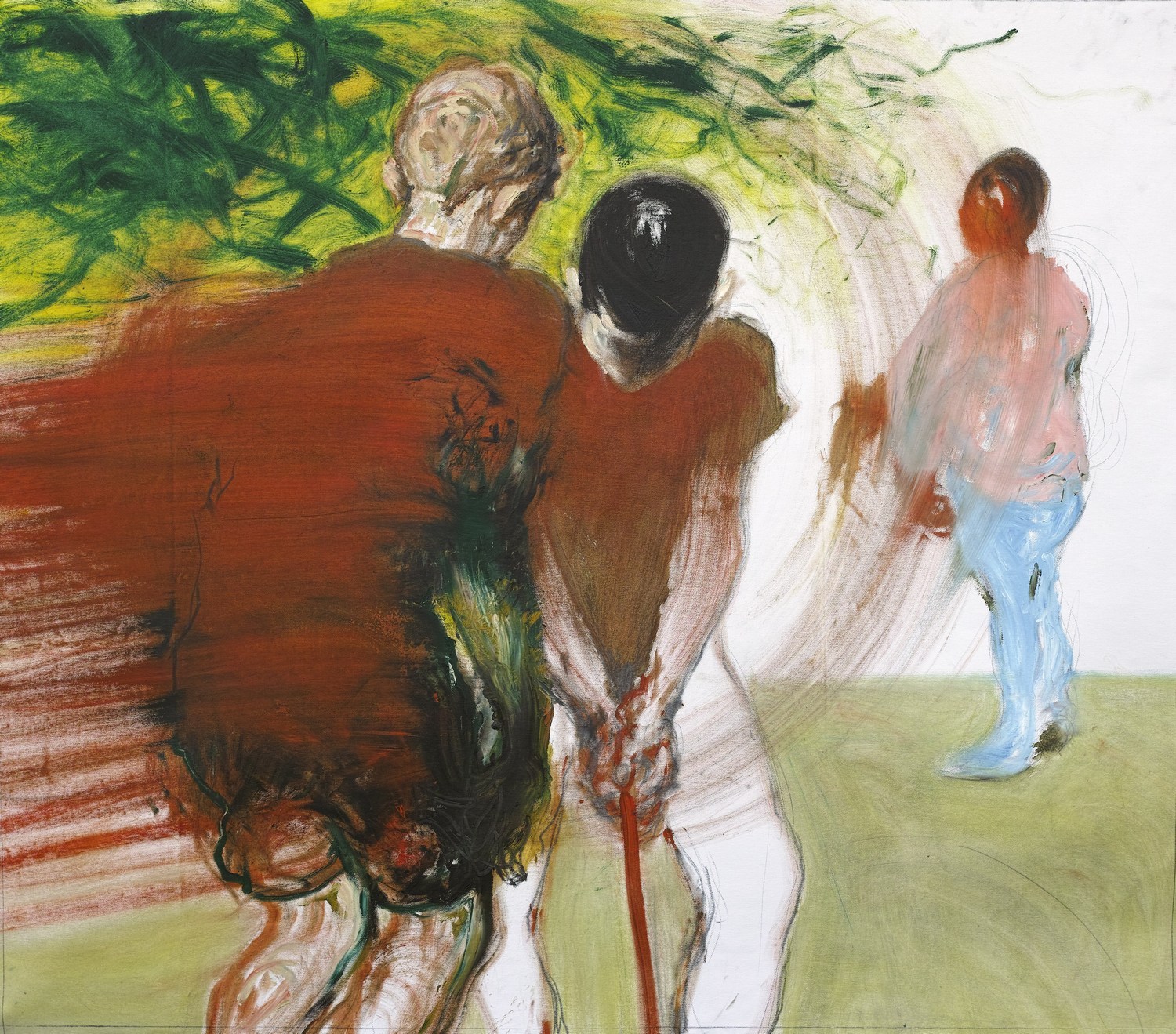 Леонид Цхэ – выпускник, а теперь преподаватель графического факультета петербургской Академии художеств – принадлежит к тому «европейскому интернационалу современной живописи», поимённый состав которого можно перечислить без особенных ошибок: председательствует, разумеется, немец Нео Раух, а в самой многочисленной германской делегации – художники на поколение младше его, также есть француз Эрнан Ба, Адриан Жени от Румынии, а ещё чех Даниэль Питин, поляк Вильгельм Сасналь и масса других художников; они 1970-х и 80-х годов рождения, и вышли на арт-сцену в последние лет десять. Как нетрудно заметить, многие происходят из бывших соцстран, художественные академии которых четыре послевоенных десятилетия следовали реалистическим конвенциям. Всех отличает умелая живопись, чья кажущаяся небрежность – один из приёмов, выражающий постинтернетное недоверие к «картинке» и связанный с её ревизией; к тому же все способы нанесения краски уже испробованы технически и исчерпаны концептуально. Эти художники переносят на холст сцены из перформансов, часто воображаемых – так, по крайней мере, на их картинах выглядят фигуры в странных положениях и за странными занятиями.