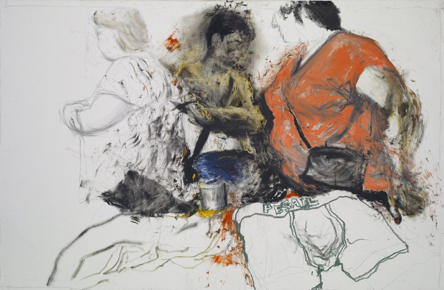Случай на рынке. Холст, масло, карандаш, масляная пастель. 2015