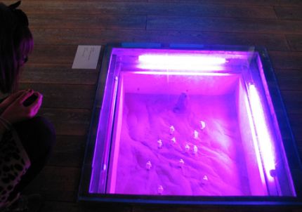 «Космос ошибок не прощает» – это еще и космос масс-медиа, который отделен от зрителя вдвойне, не только стеклом иллюминатора или скафандра, но и проекцией на мониторе. Легендарная история о том, что высадки американских астронавтов не было, а показанные всему миру телевизионные кадры были сняты в голливудском студийном павильоне, известна всем. Объекты на выставке Фишерса укрепляют это сомнение в реальности космоса и подозрение в его тотальной придуманности – художник собирает инсталляции с фигурками космонавтов из набора игрушек, подсвечивает их синим или красным светом и усиливает впечатление «неземным» звуком. Тот же ракурс, что в объектах с космонавтами-солдатиками, используется и в живописи: очень маленькая фигурка космонавта внутри пустынного и условного пейзажа на многих картинах напоминает о «Космической одиссее 2001 года» Стенли Кубрика.