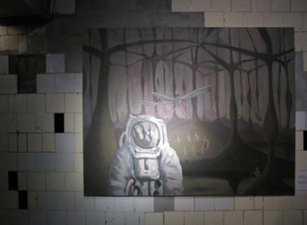 Микелис Фишерс выставляется в галерее «Формула» в «Этажах». Наверное, для рижанина в такой новости привычным и понятным окажется только имя художника, а для петербуржца – всё остальное, кроме имени художника. Латышскому зрителю Микелис Фишерс хорошо знаком, а в Петербурге современное искусство из Латвии показывается нечасто и от случая к случаю, имена и события латышской арт-сцены здесь практически не представляют (как раз это положение исправляет по мере сил Arterritory.com). Поэтому естественно, что творчество каждого нового художника воспринимается отдельно и как обособленный феномен. Что можно и стоит узнать о художнике до знакомства с выставкой? Микелис Фишерc родился в 1970 году, учился в Риге в Академии художеств. Как всякий современный художник, Фишерс активен в разнообразных медиа: это и живопись, и инсталляция, и видео, помимо этого он занимается и сценографией. «Космос ошибок не прощает» – это цельный большой проект, датированный 2009–12 годами. На выставке объединены вместе и живописные полотна, и скульптура с найденными объектами, и инсталляция, и звуковое оформление. Ещё можно добавить, что присутствующим на вернисаже художник предложил использовать в случае вероятного общения с инопланетянами шлемы, сделанные им в виде бумажных пакетов, которые надо надевать на голову.