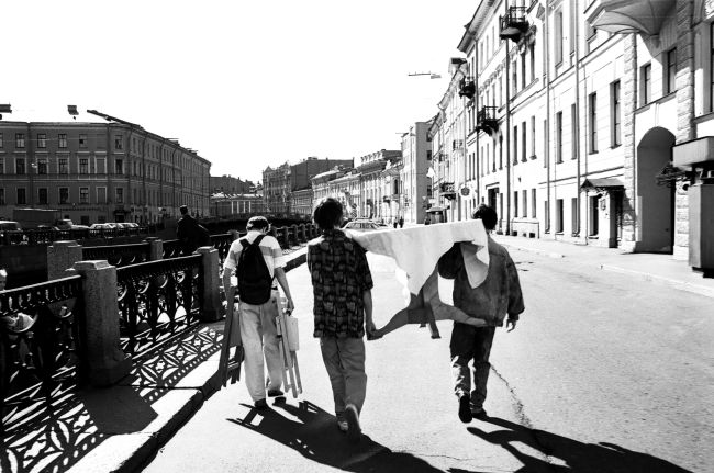 Самоуничижение паче гордости – ядро доктрины «Новых тупых». Оно отражало и реальное положение художника, не обладающего тусовочными способностями. Мы нищие, нас никогда не выставят не только в МоМА, но даже в каком-нибудь Русском музее, мы канем в Лету, и все наши действия – лишь для себя и для бога, которого мы называем этим навязшим в зубах словом с двумя буквами «с» посередине. Даже в приличные выставочные залы нас, убогих, не пустят – решили Тупые и стали делать стихийные выставки в коридорах и туалетах галерей (потом, уже в наши дни, из этой практики самозахвата вспомогательных пространств родится проект «Галерея PARAZIT», паразитирующий на чужих пространствах и ныне насчитывающий десятки участников, а глава проекта – бывший Тупой Владимир Козин). Скромность, преувеличенная до юродства, бедность, возведённая в степень добродетели – эстетический инструмент Тупых, но удивительно то, что это были единственные для своёго времени художники, у которых эстетическое стало приложением к этическому.